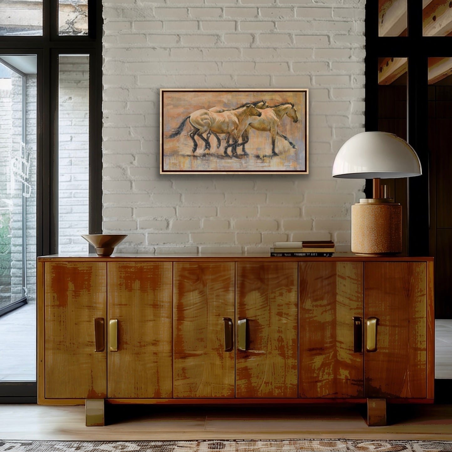 Kiger Run is inspired by my summer trip to the Kiger HMA in Eastern Oregon. The stallion in this piece was intensely occupied with guarding his herd, driving off any encroaching bachelors with swift, commanding movement.